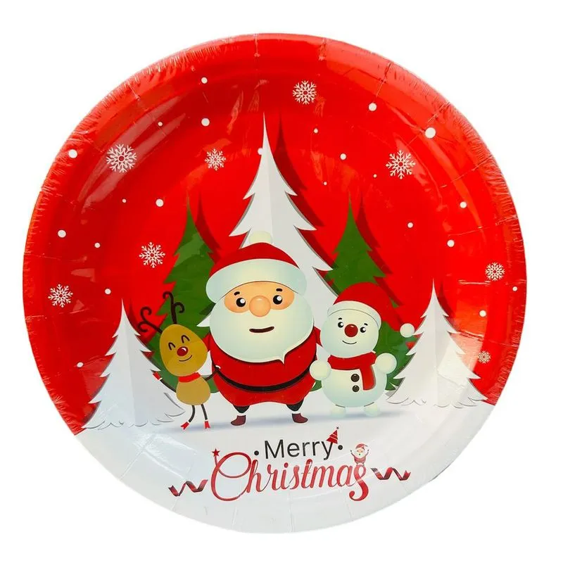 Descrição: Prato de papel natal com estampa de merry christmas descartável redondo. Lindo e perfeito para servir neste natal.