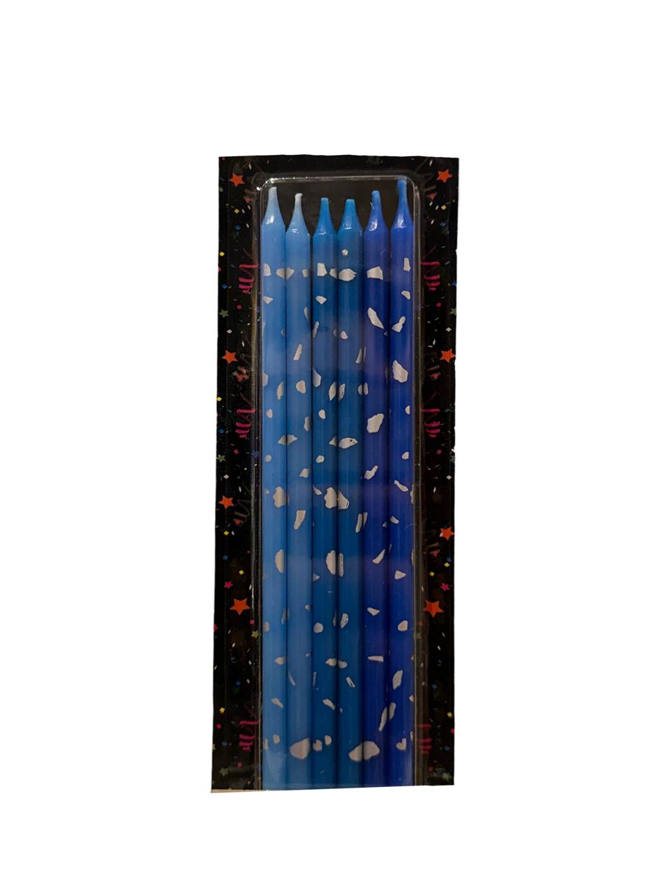 Descrição: Vela palito azul com respingos prata (azul). Fininha, essa vela é muito charmosa completa e alegrar qualquer bolo.