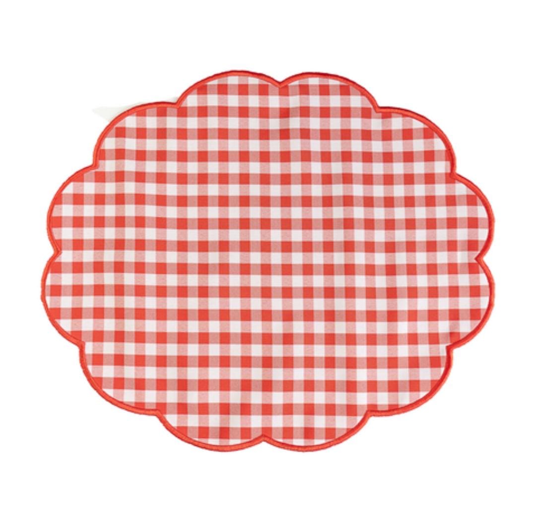 Descrição: Jogo americano xadrez vermelho com bordas redondas. Perfeito para refeições em sua mesa, deixando ela um charme.