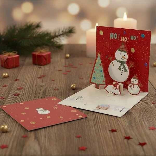 Descrição: Cartão de Natal Boneco de Neve 3D. vem com temas variados , como Boneco de Neve, Coelho, Árvore. ideal para presentear, decorar e expressar afeto com charme e originalidade.