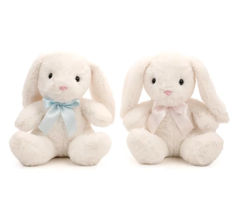 Descrição: Coelho decorativo branco de pelúcia com laço sortido rosa claro ou azul claro. Alimente o espírito de páscoa e alegre toda a casa e as crianças com os nossos coelhos fofinhos!