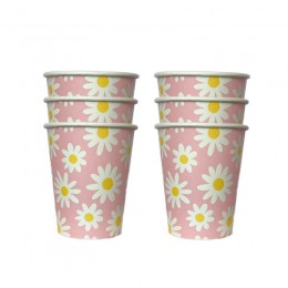 Descrição: Copo de papel descartável rosa com estampa de margaridas. Dê um charme extra à sua comemoração!