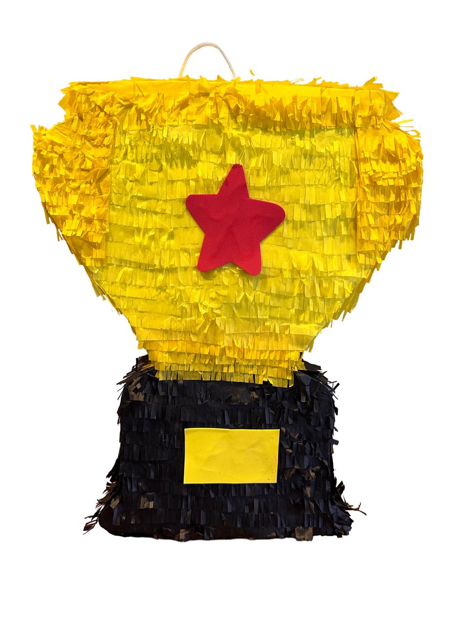 Descrição: Pinhata em formato Troféu. Esta pinhata é perfeita para entreter seus convidados com uma brincadeira divertida e animada. Ao bater com o bastão, abrirá a pinhata que pode estar cheia de guloseimas gostosas e brinquedos.