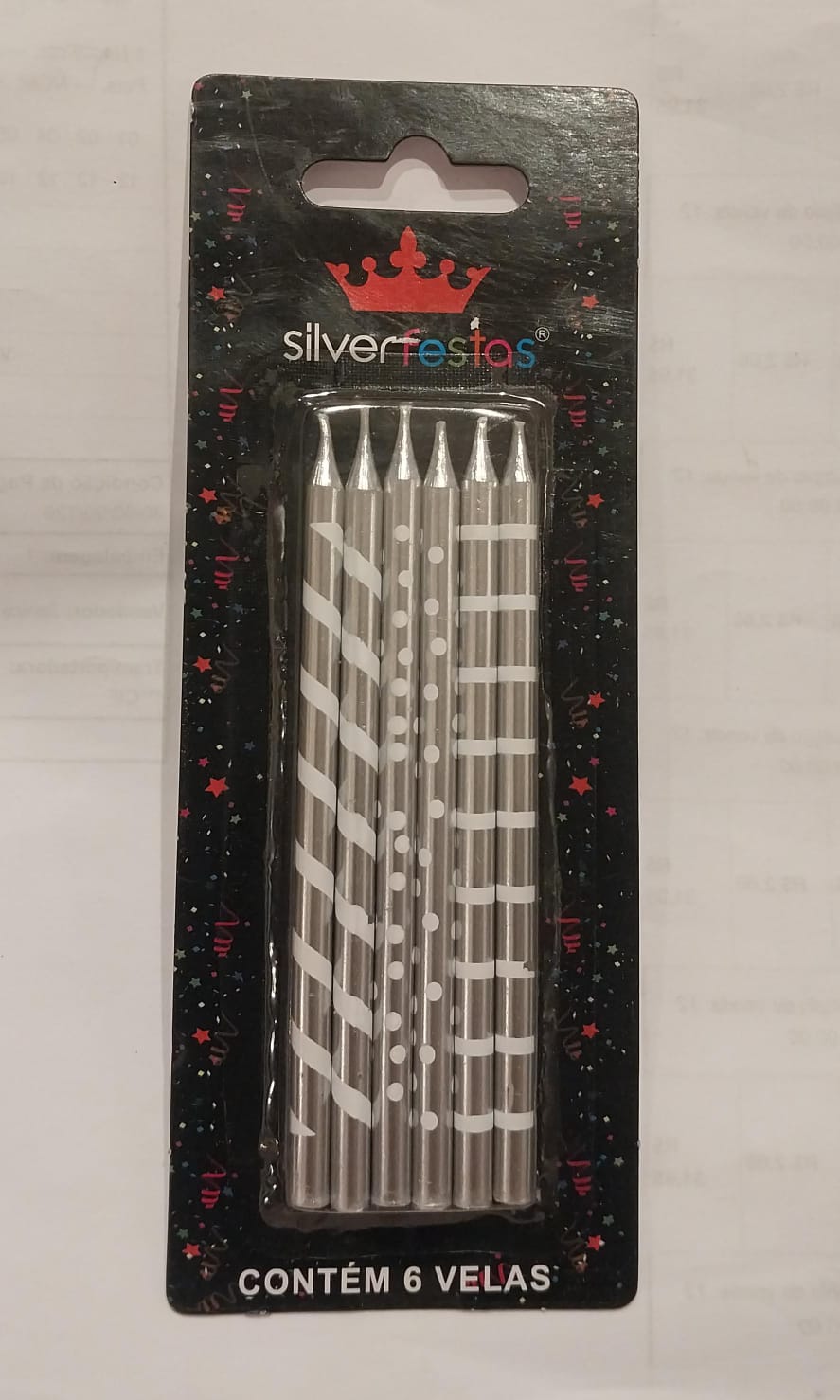 Descrição: Vela palito prateada metalizado. Essa vela é muito charmosa e completar e alegrar qualquer bolo.