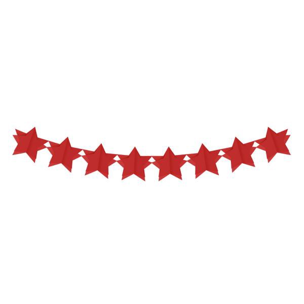Descrição: Faixa decorativa de papel, em formato de estrelas 3d vermelha.