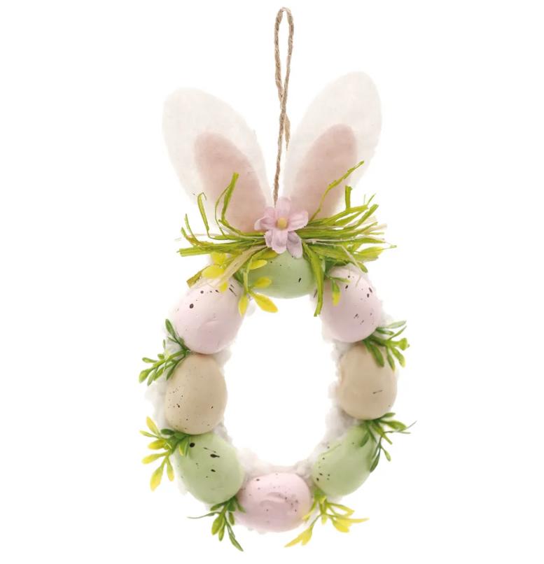 Descrição: Guirlanda decorativa de isopor com ovos decorativos e orelha de coelho - Colorido