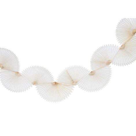 Descrição: Guirlanda de leques de papel de seda cor bege. Deixe sua festa ainda mais linda e divertida! Aproveite e use como decoração na mesa do bolo, pendurado ou na barra da mesa, fica lindo! Guirlanda já vem montada.