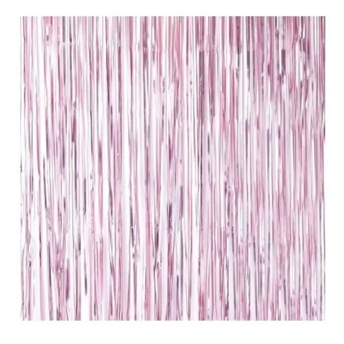 Descrição: Cortina de franja metalizada cor rosa bebe. para deixar o ambiente lindo e mais decorado.