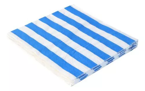 Descrição: Guardanapo de papel formato quadrado azul listrado, bom para deixar seu ambiente mais alegre e divertido.