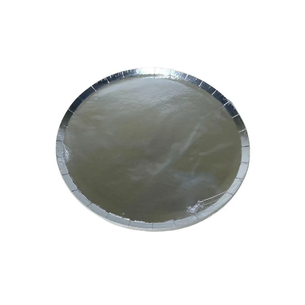 Descrição: Prato de papel descartável liso prata.