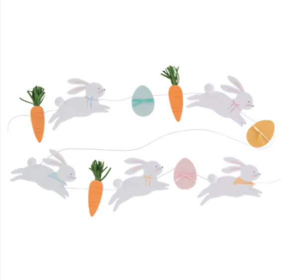 Descrição: Guirlanda decorativa com coelhinhos, ovos coloridos e cenouras. Perfeita para enfeitar sua casa ou evento de páscoa. Com detalhes brilhantes, pompons..