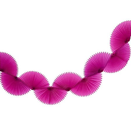 Descrição: Guirlanda de leques de papel de seda rosa orquídea. Deixe sua festa ainda mais linda e divertida! Aproveite e use como decoração na mesa do bolo, pendurado ou na barra da mesa, fica lindo! Guirlanda já vem montada.