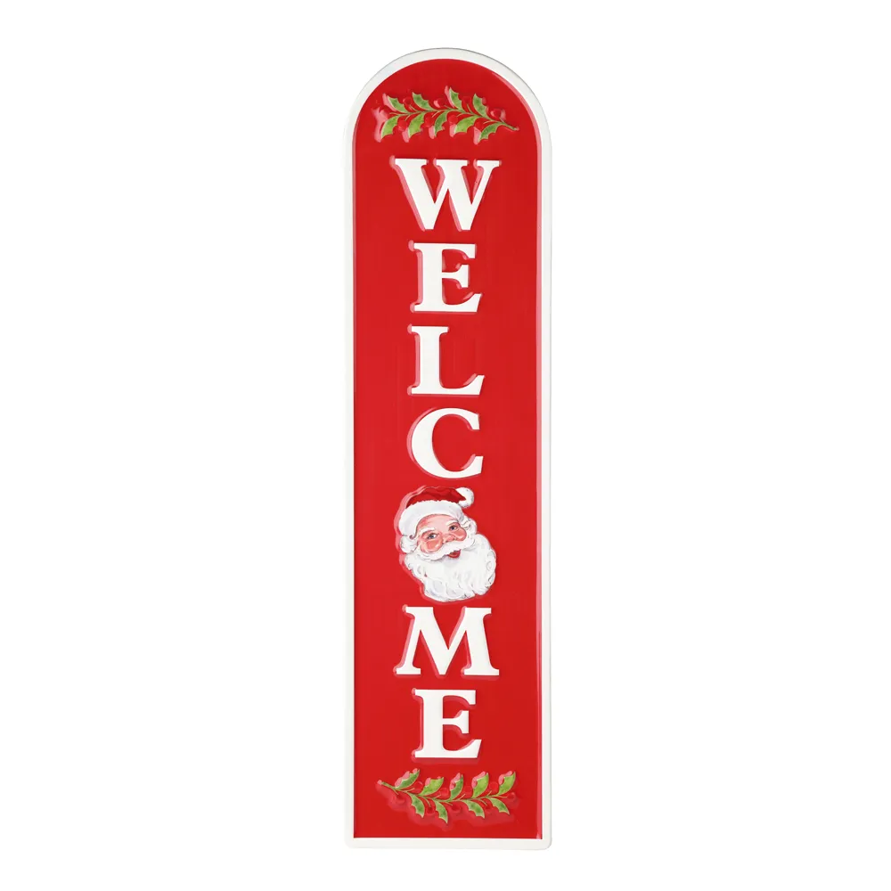 Descrição: Placa de metal vermelho welcome de natal. para deixar seu ambiente com a cara do natal.