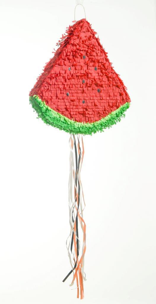 Descrição: Pinhata em formato de melancia. Esta pinhata é perfeita para entreter seus convidados com uma brincadeira divertida e animada. Ao puxar os fios, somente um abrirá a pinhata que pode estar cheia de guloseimas gostosas e brinquedos.