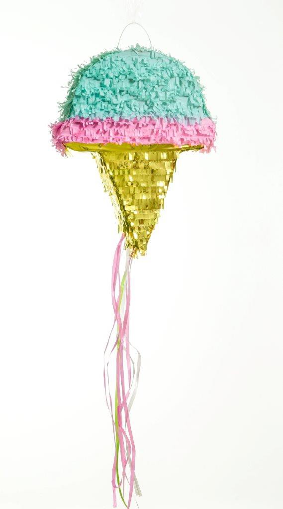 Descrição: Pinhata em formato de sorvete de casquinha. Esta pinhata é perfeita para entreter seus convidados com uma brincadeira divertida e animada. Ao bater com o bastão, abrirá a pinhata que pode estar cheia de guloseimas gostosas e brinquedos.