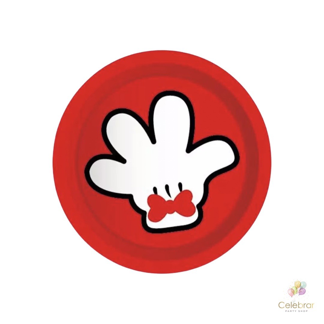 Descrição: Prato de papel redondo vermelho grande com estampa da mão do Mickey. Lindo demais e perfeito para enfeitar sua mesa!