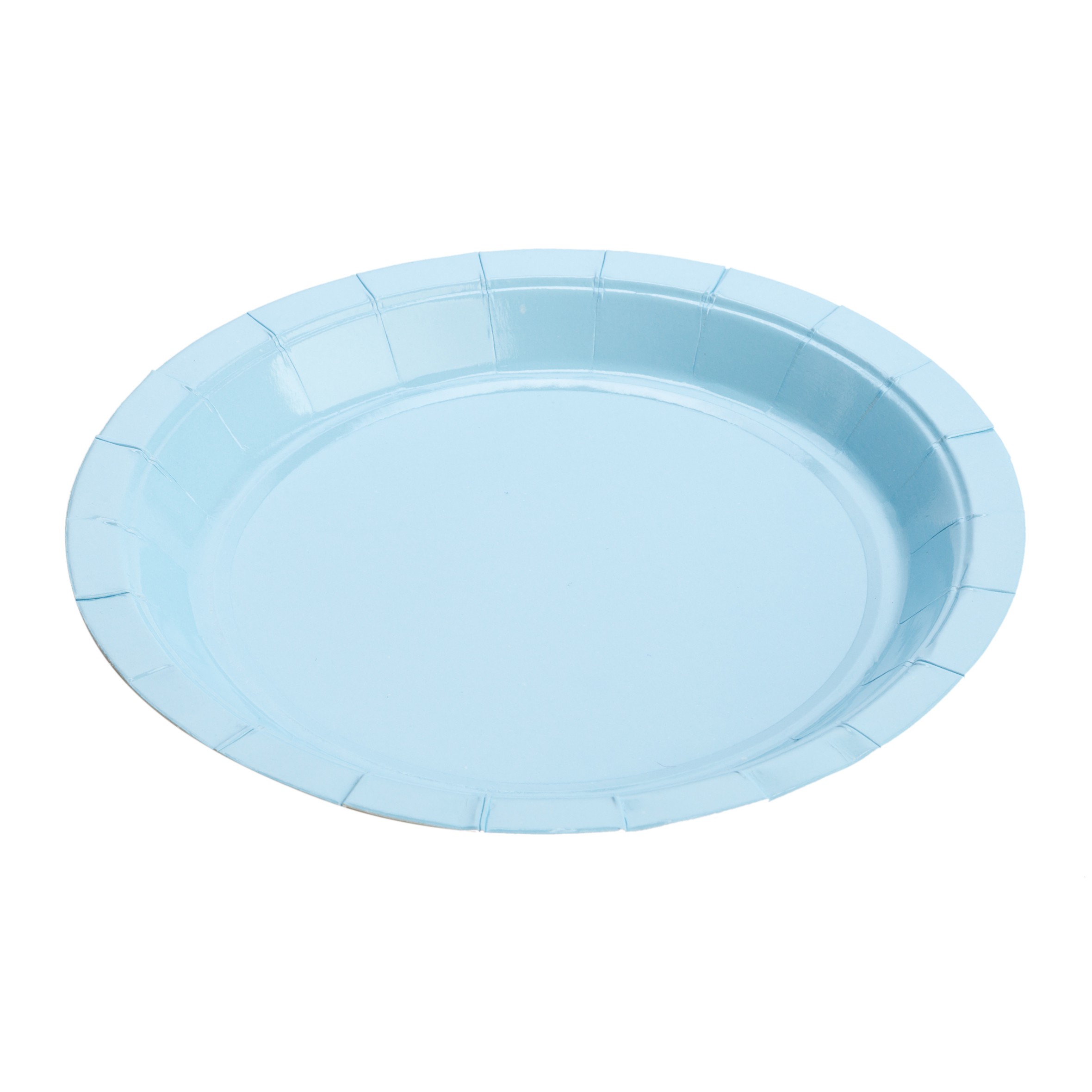Descrição: Prato de papel descartável redondo liso azul bebê