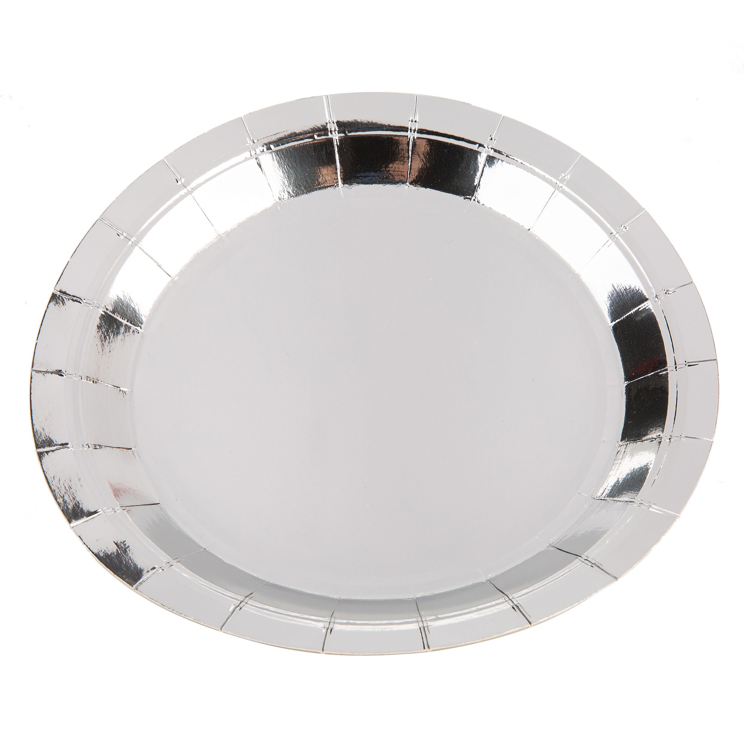 Descrição: Prato de papel descartável redondo liso prata