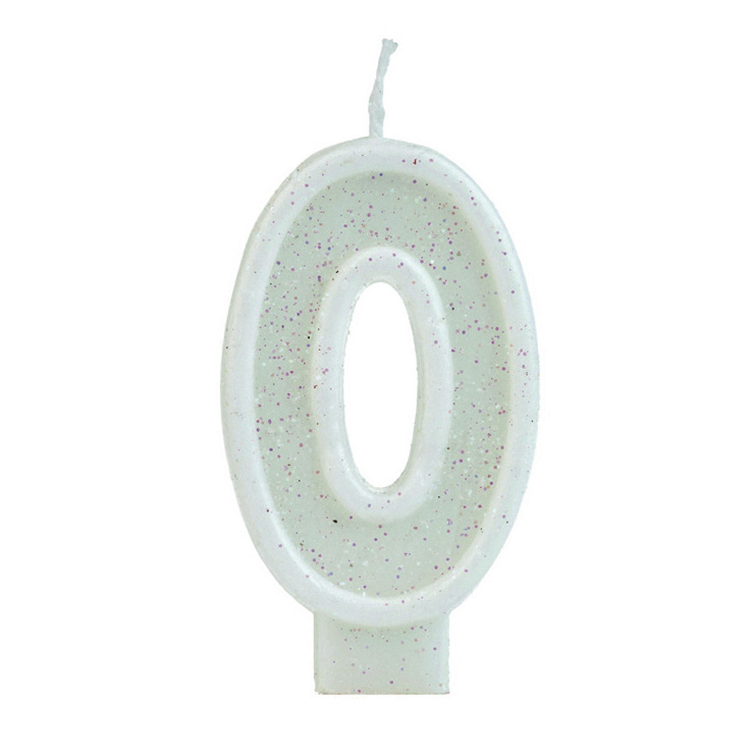 Descrição: Vela numeral branca com glitter. Escolha números de 0 a 9.