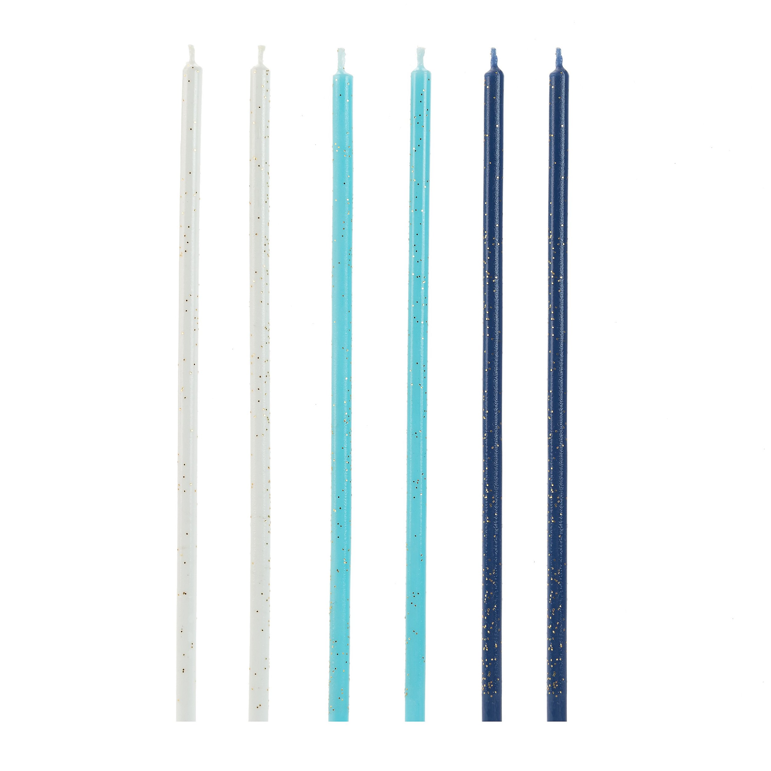Descrição: Vela palito longa azul e branca com pontos de glitter. Fininha, essa vela é muito charmosa e completa qualquer bolo.
