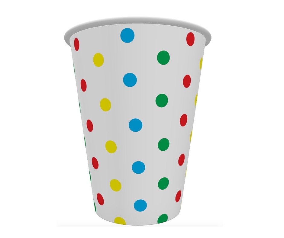 Descrição: Copo de papel descartável poá colorido. Dê um charme extra à sua comemoração!