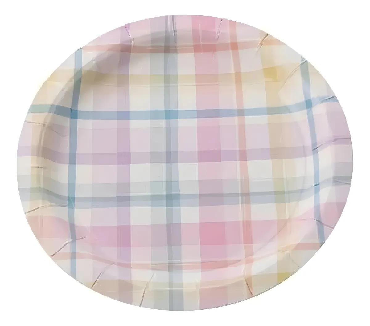 Descrição: Prato de papel xadrez candy color junino. Deixe ainda mais sua mesa mais linda com esses pratos juninos.