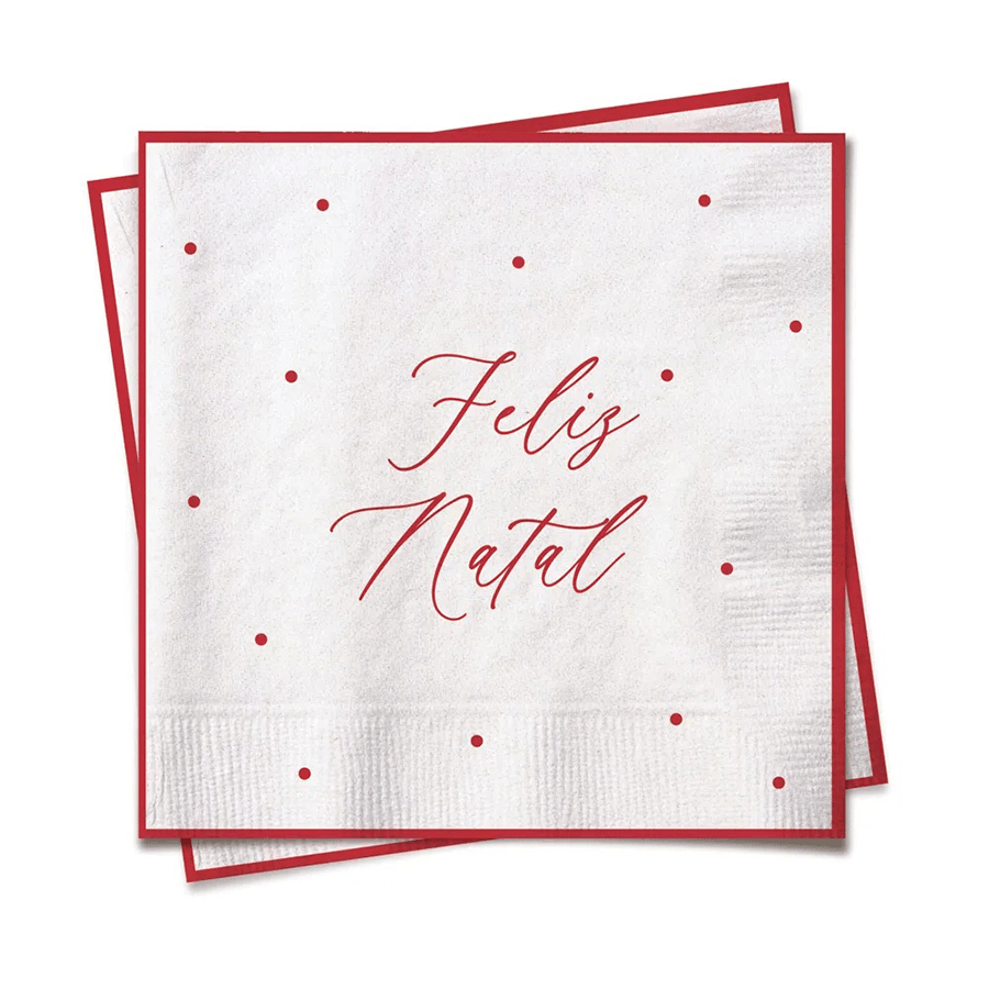 Descrição: Guardanapo de papel poa feliz natal, para deixar sua mesa natalina charmosa e especial nessa data tão importante.