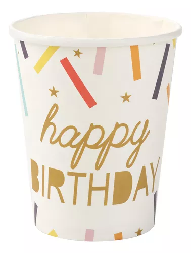 Descrição: Copo de papel descartável happy birthday confete colorido ,uma escolha maravilhosa para decorar sua festa e se divertir.